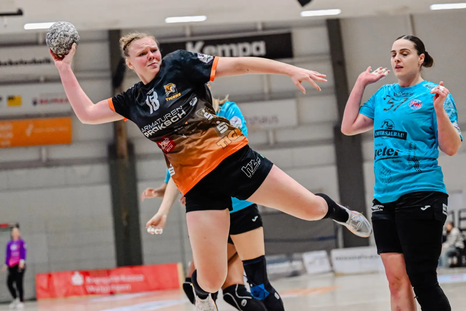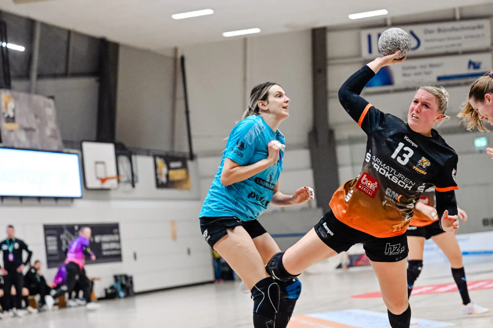 „Wir wollten mit einer konzentrierten Leistung von Beginn an gleich einen Vorsprung herauswerfen“, gab der THC-Trainer Herbert Müller nach dem Schlusspfiff zu Protokoll. Und das gelang dem Erstligisten auch. Der VfL fand anfangs wenig Mittel gegen die kompakte Thüringer Abwehr, kam mehrmals in Zeitspielnot oder scheiterte an der THC-Torhüterin Christina Lövgren. Nach etwas mehr als vier Minuten führten die Gäste mit 3:0. Doch die TIGERS kämpften trotz der spielerischen Überlegenheit und der höheren Entschlossenheit des THC beim Torabschluss weiter. Mit viel Einsatzwillen sorgten auch die Waiblingerinnen ihrerseits für eine unterhaltsame Pokalbegegnung. Doch trotz der frühen ersten Auszeit des VfL nach zehn Minuten, baute der THC die Führung weiter aus. Thüringens erfolgreichste Werferin Anna Szabó (6) traf nach knapp 21 Minuten zum 15:7. Anschließend hatte der VfL seine beste Phase: Mit mehr Druck und dem starken Zusammenspiel zwischen Rückraum und Kreis holten die TIGERS mehrere Strafwürfe heraus und trafen drei Mal in Folge zum 10:15. Doch näher sollte der VfL nicht mehr heranrücken. Zum einen war der THC einfach dynamischer und abschlusssicherer, zum anderen unterliefen den TIGERS ein paar technische Fehler und Ballverluste. Mit dem Halbzeitstand von 12:19 Toren hielt sich der Rückstand aus Waiblinger Sicht dennoch in recht passablen Grenzen.