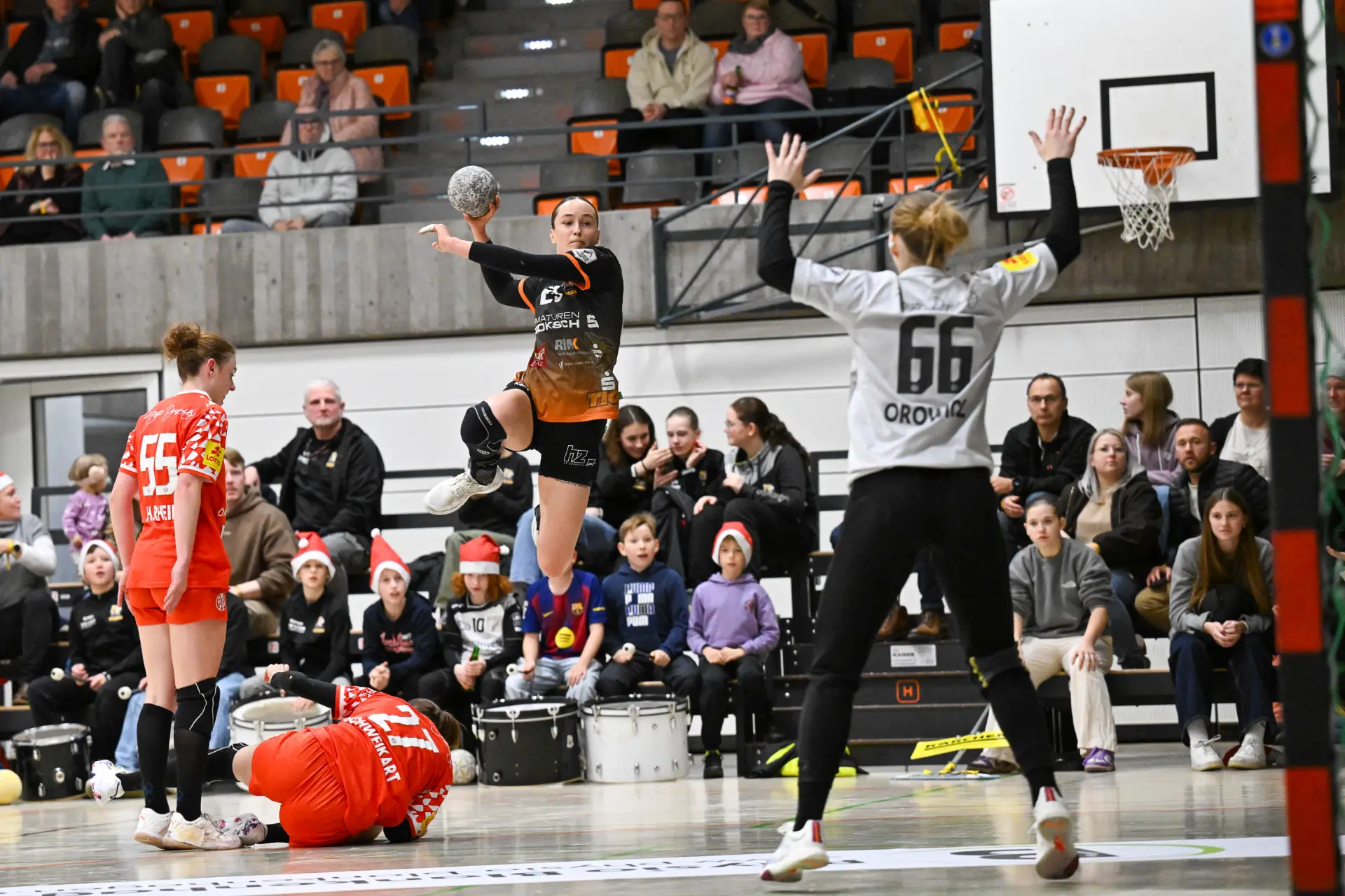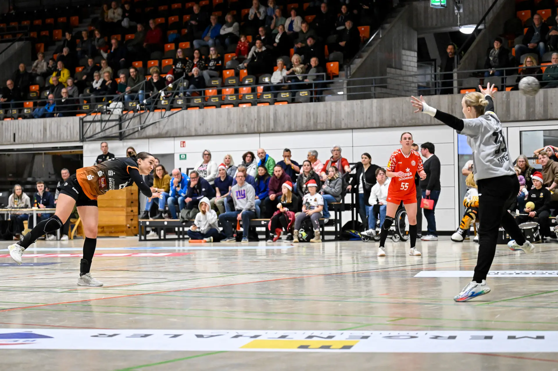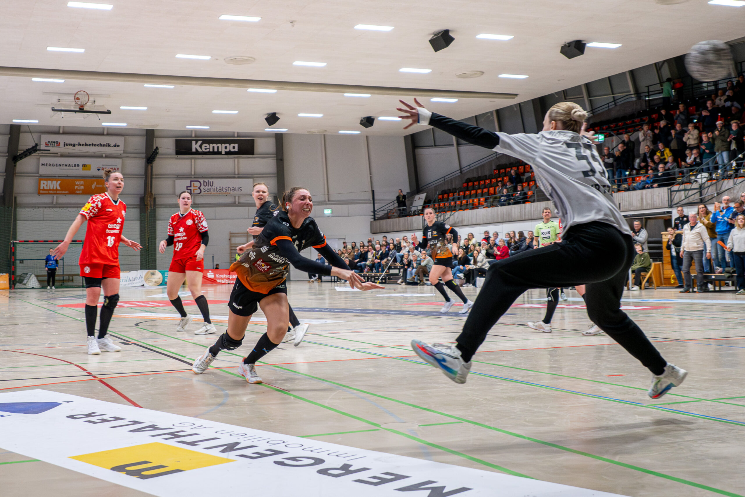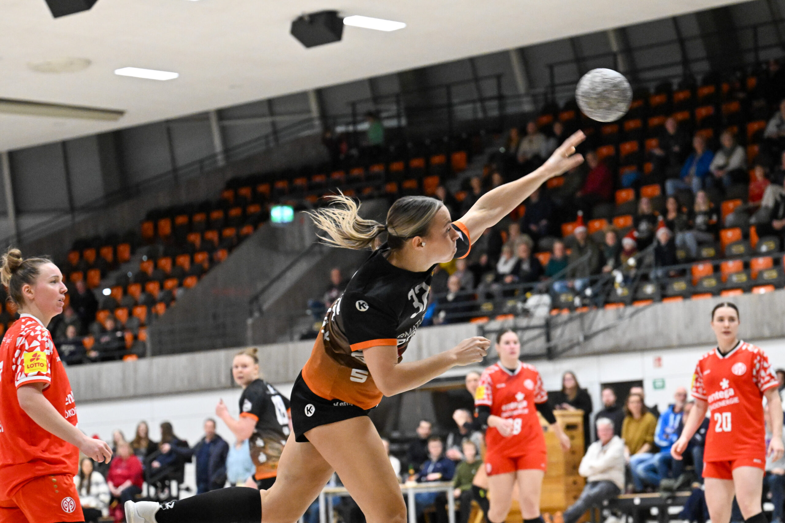 Mainz nahm den Aufschwung der letzten Minuten vor dem Pausenpfiff mit in den Beginn des zweiten Durchgangs. Trotz dem weiterhin großen kämpferischen Einsatz der gesamten Waiblinger Abwehr inklusive der beiden guten TIGERS-Torhüterinnen Sarah Nørregaard Thomsen und Laura Hoke, fanden auf Mainzer Seite vor allem Christine Burgard und Tabea Schweikart doch noch die entscheidende Lücke in der Waiblinger Defensive. Beim VfL erwies sich die Einwechslung von Amélie Herzog als richtig. Die Französin traf von der Rechtsaußenposition vier Mal. Dennoch: Als der Gastgeber nach 44 Minuten mit 16:18 Toren im Rückstand lag, drohte den TIGERS trotz der guten Leistung, wie schon vor einer Woche gegen den Bergischen HC, am Ende wieder mit leeren Händen dazustehen. Mit der enormen Willenskraft und hohen Einsatzbereitschaft in der Abwehr zogen die TIGER Girls in der spannenden Schlussphase dieses Mal die Partie jedoch wieder auf ihre Seite. Zwar verkürzte Christine Burgard nochmals zum 21:22, doch danach ließ der VfL nichts mehr anbrennen. Amélie Herzog, Lara Eckardt und Isabel Kattner per Wurf ins Empty Goal machten den Deckel zum viel umjubelten und so wichtigen 25:21-Erfolg endgültig drauf. Die TIGERS haben sich mit den beiden Punkten hochverdient selbst ein Geschenk unter den Weihnachtsbaum gelegt.