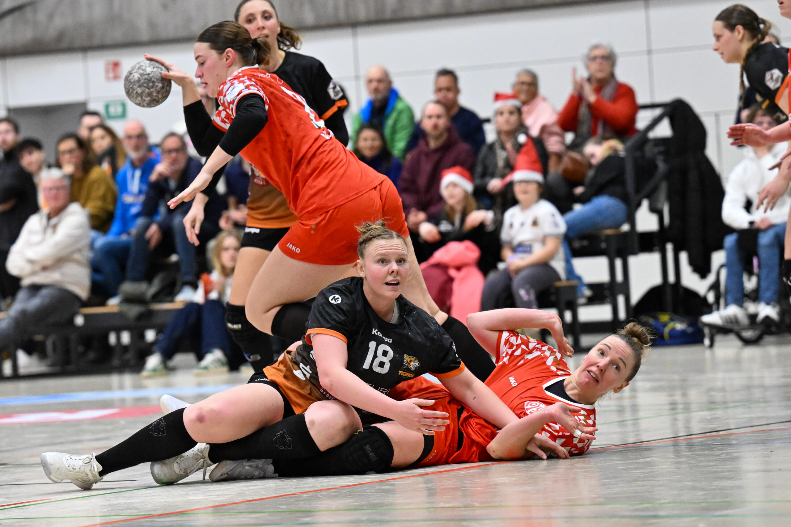 Im letzten Spiel des Jahres setzten sich unsere TIGER Girls nach einem wechselvollen und spannenden Spielverlauf mit 25:21 Toren (10:9) gegen den 1. FSV Mainz 05 durch. Damit beendeten die TIGERS eine Serie von fünf Niederlagen in Folge, auf der anderen Seite mussten die Meenzer Dynamites nach fünf aufeinanderfolgenden Siegen erstmals wieder ohne Punkte aus dem Rennen gehen.