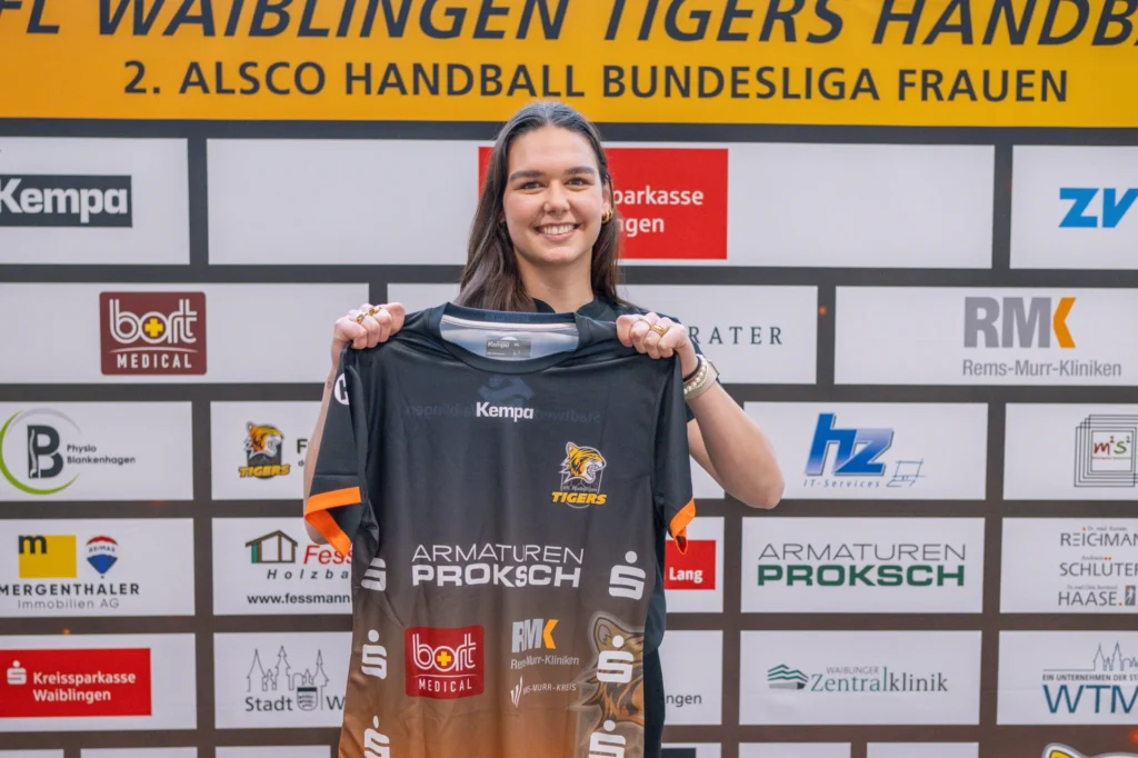 Vor dem Heimspiel der TIGERS in der 2. Alsco Handball Bundesliga Frauen gegen die Spreefüxxe Berlin am vergangenen Samstag konnte Harald Beilschmied, Sportlicher Leiter Frauen bei den TIGERS, den Zuschauern in der Rundsporthalle den zweiten Neuzugang für die kommende Saison präsentieren: Die 23jährige Schweizerin Celia Heinzer wechselt vom Schweizer Erstligisten und aktuellen Cupsieger Spono Eagles Nottwil für die kommenden zwei Jahre zum VfL Waiblingen!